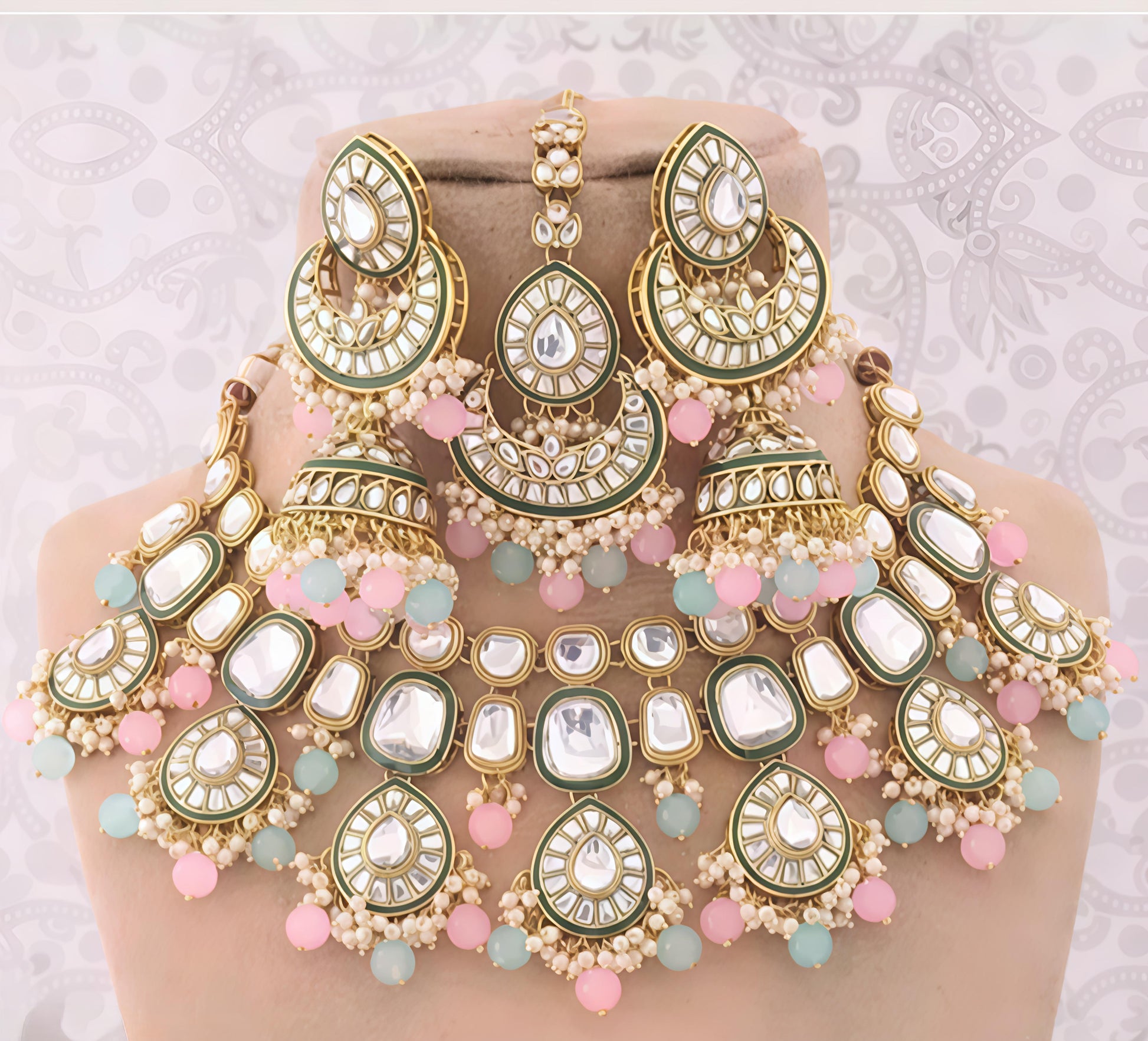Mint pink kundan set (⭐⭐⭐⭐⭐)