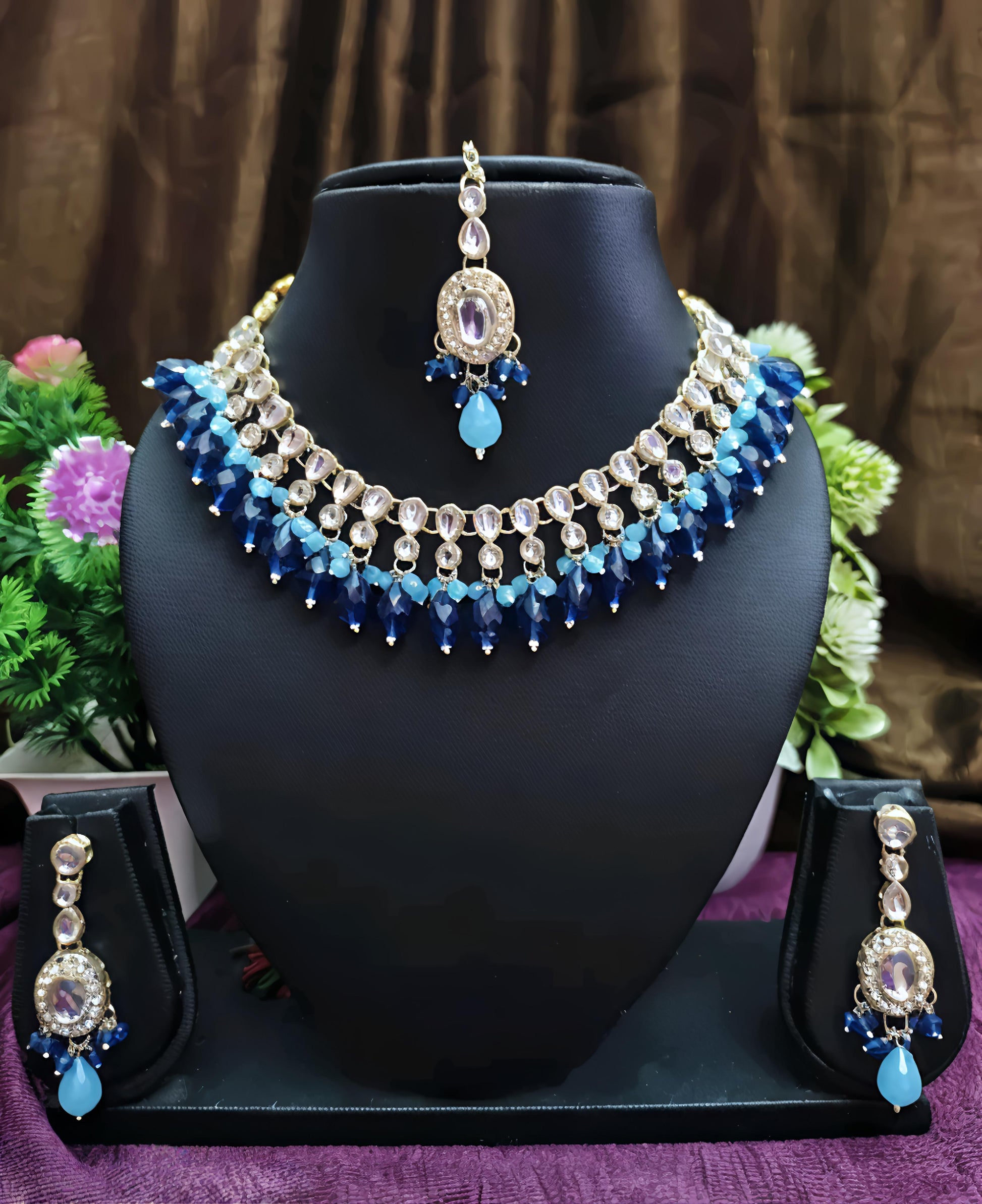 - Complete Bridal Set: Includes a stunning necklace, matching earrings, and a mangtika – a complete ethnic ensemble.