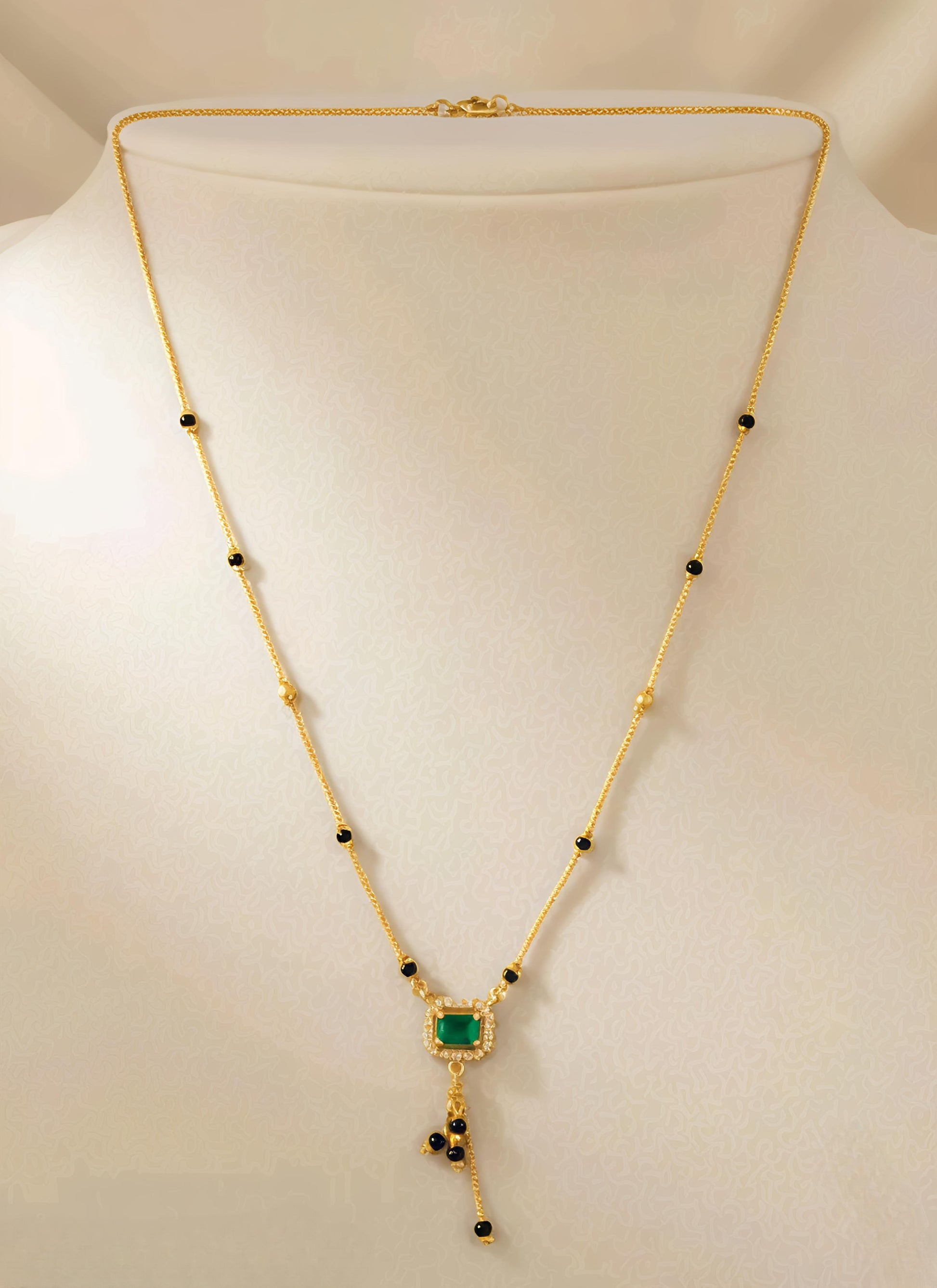 - Elegant design: Stylish single-strand mangalsutra featuring a modern pendant with green stone centerpiece for a timeless look.